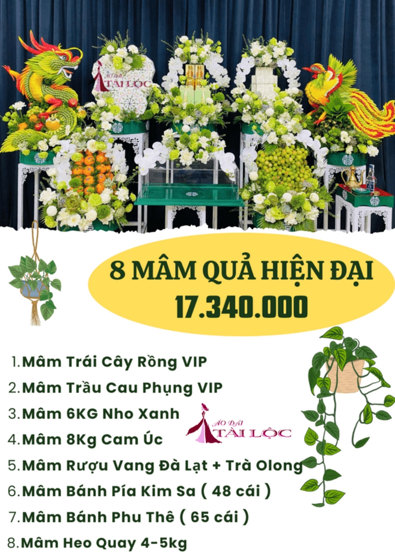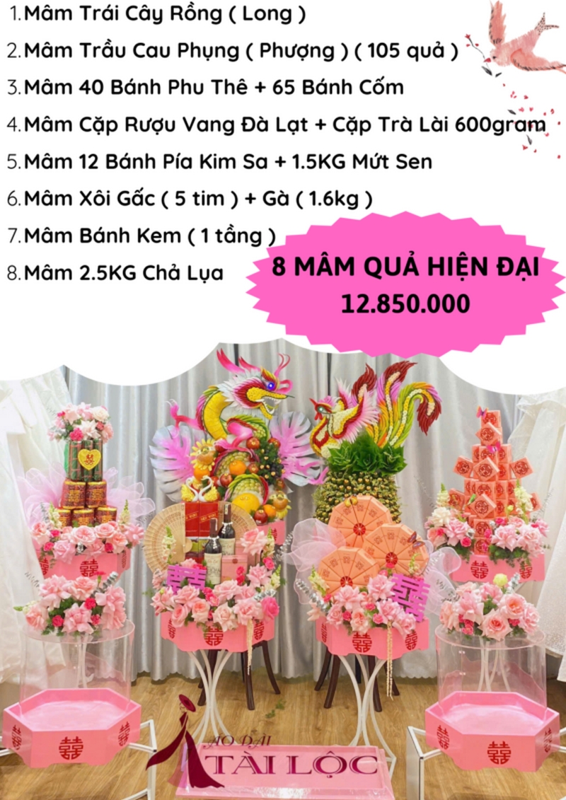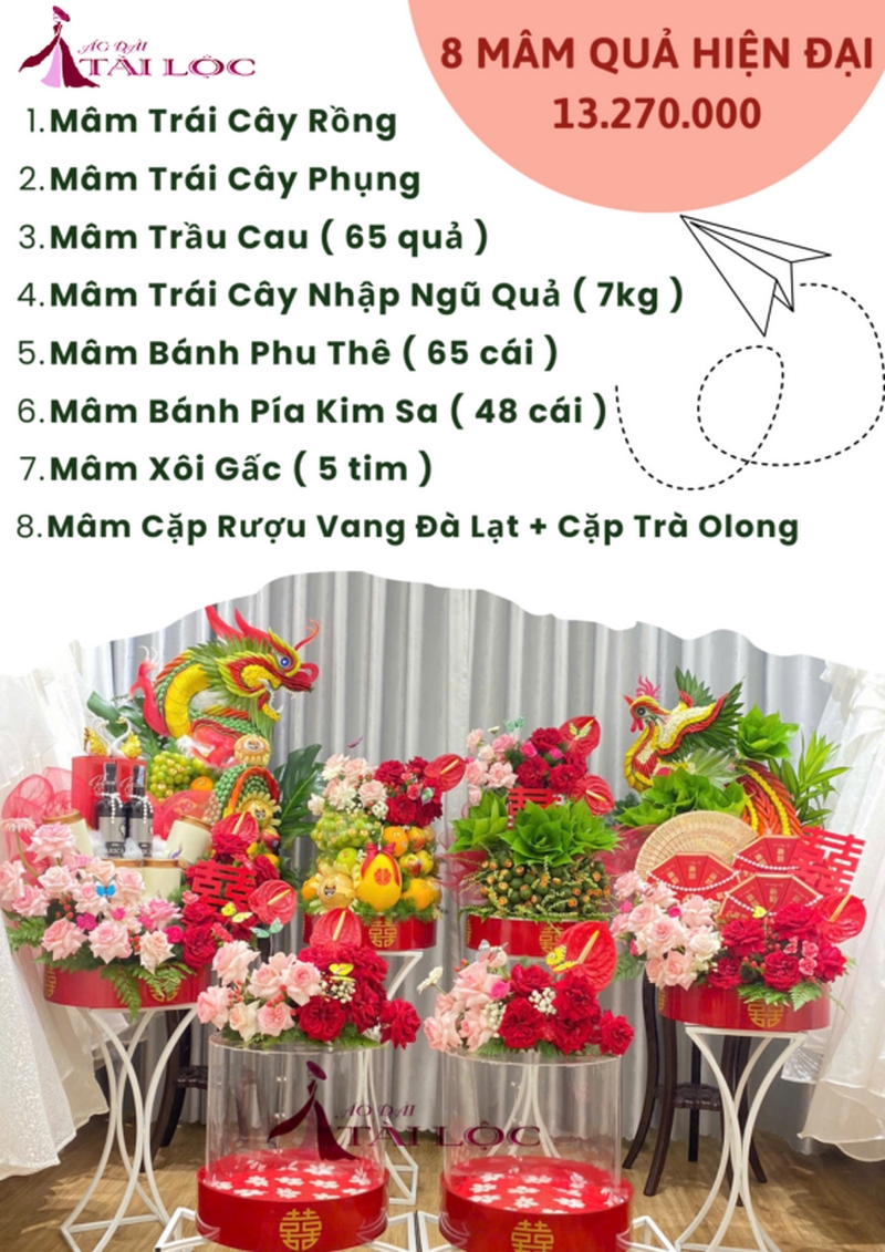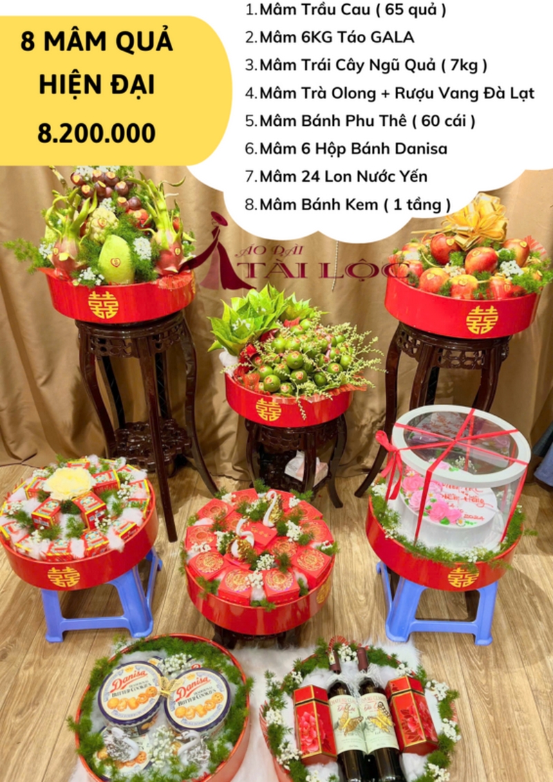 8 mâm quả đám cưới gồm những gì? Dịch vụ cho thuê 8 mâm quả cưới – Áo Dài Tài Lộc