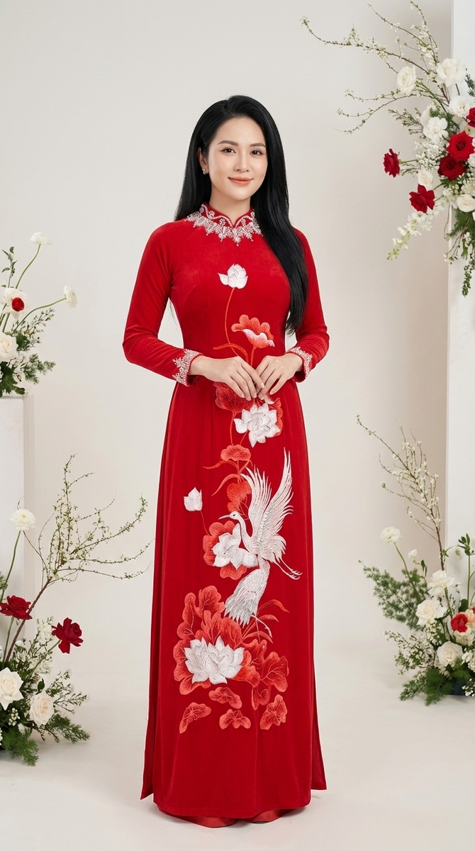 ÁO DÀI BÀ SUI NHUNG ĐỎ CAO CẤP