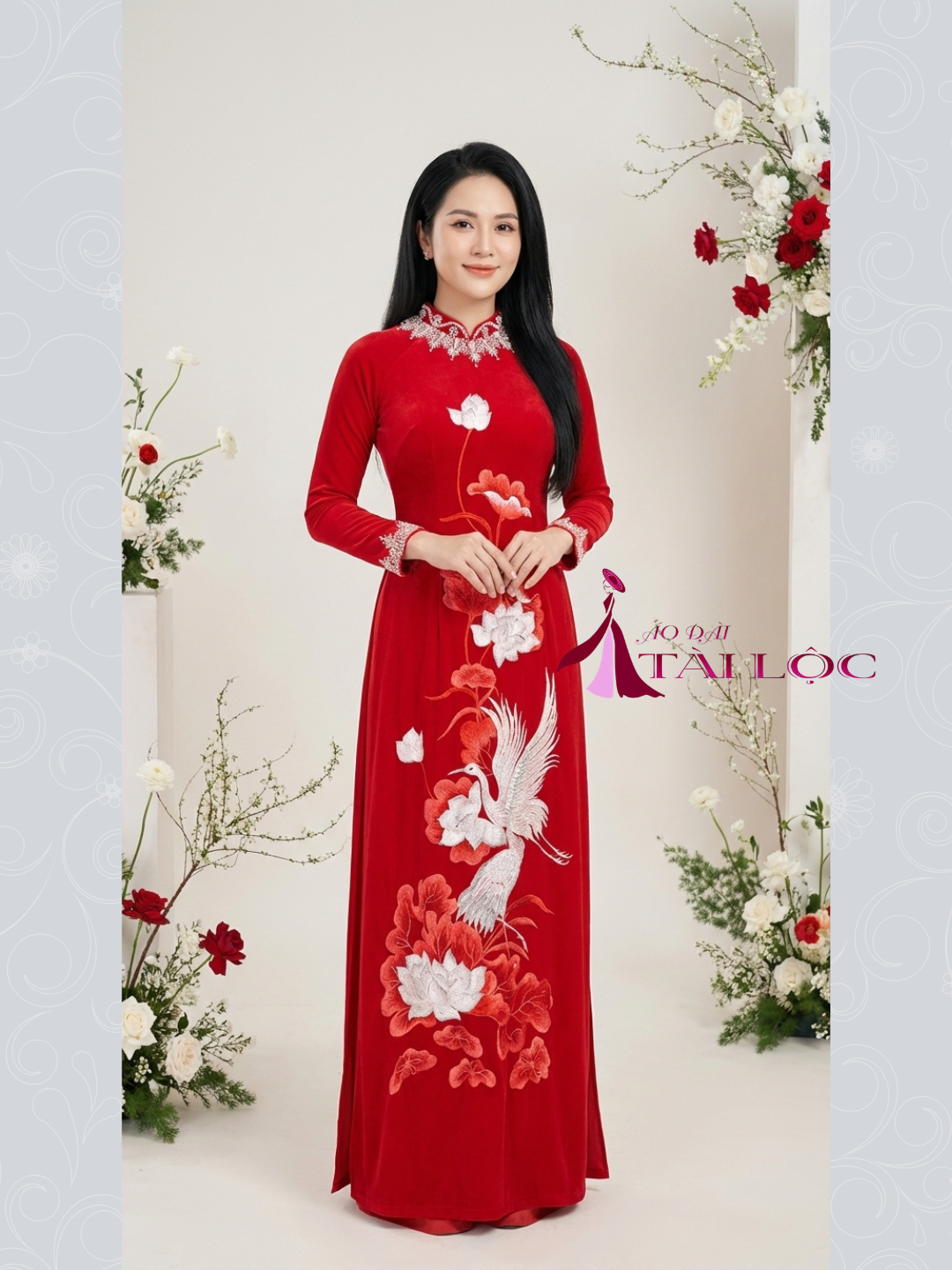 ÁO ÀI BÀ SUI LỤA ĐỎ ĐÍNH KẾT THÊU HẠC
