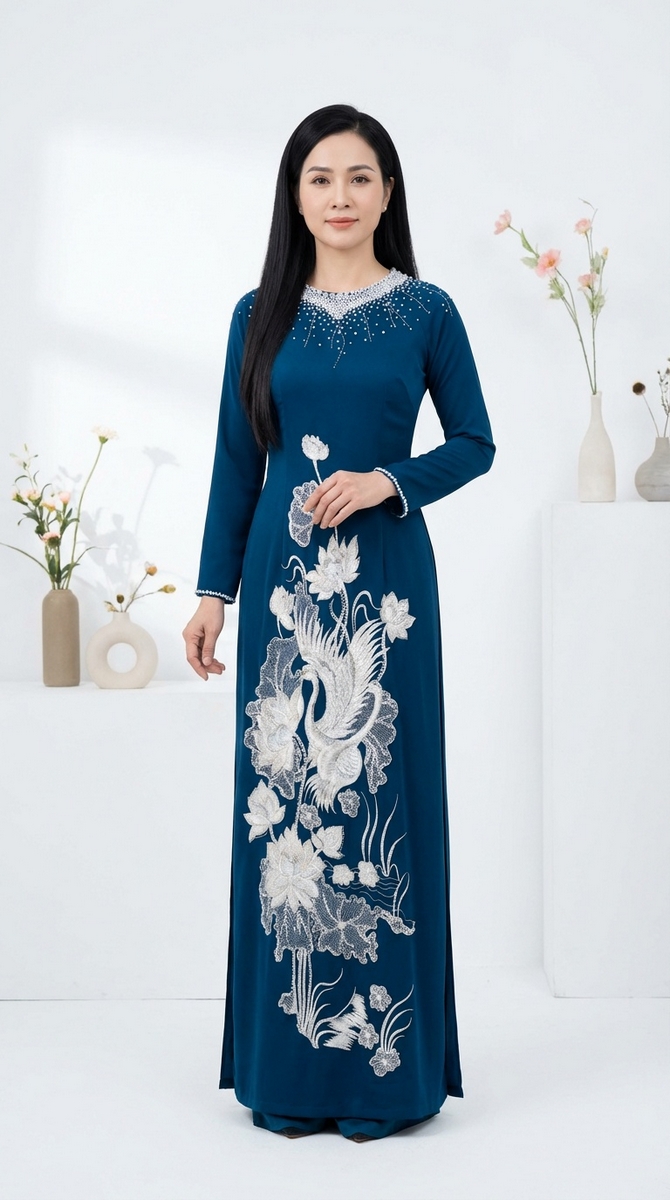 ÁO DÀI BÀ SUI CỔ CAO THÊU
