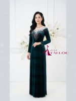ÁO DÀI BÀ SUI NHUNG XANH CAO CẤP