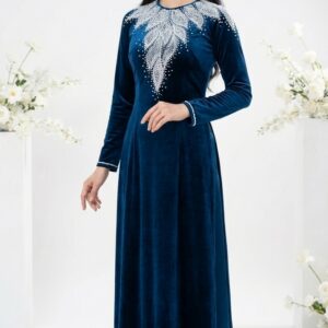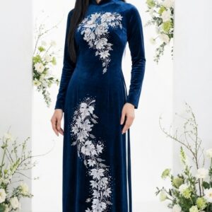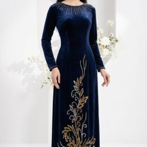 ÁO DÀI BÀ SUI NHUNG XANH DƯƠNG ĐẬM (GVNX1-42)