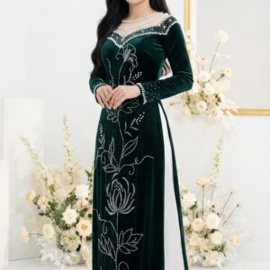 ÁO DÀI BÀ SUI NHUNG XANH KẾT CƯỜM SANG TRỌNG