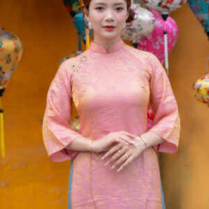 Giá gốc là: 120,000₫.100,000₫Giá hiện tại là: 100,000₫.ÁO DÀI BƯNG QUẢ HỒNG GẤM TAY BỒNG