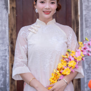 Giá gốc là: 120,000₫.100,000₫Giá hiện tại là: 100,000₫.ÁO DÀI BƯNG QUẢ MÀU KEM HỌA TIẾT HOA LÀI (KEM HOA LÀI )