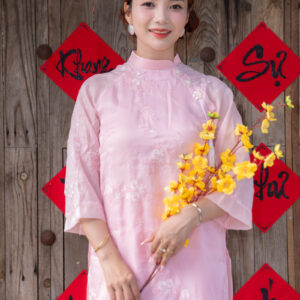 Giá gốc là: 150,000₫.100,000₫Giá hiện tại là: 100,000₫.ÁO DÀI BƯNG QUẢ HỒNG THÊU HOA NHÍ