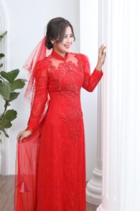 Áo Dài Cưới Cô Dâu Chú Rể Màu Đỏ Thêu Rồng Phượng( MSP- G15)