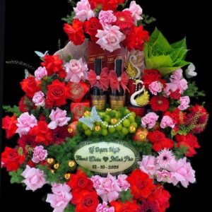 Tráp Dạm Ngõ 54 : 3,000,000 VND ( 1 Cặp Trà Olong hoặc Bắc Thái + 1 Chai rượu VANG ý + 1 Hộp bánh Socola Đức 16 Viên + 2 kg Táo Gala hoặc Envy + Trầu Cau + 12 Bánh Cốm +Kết Bông tươi ) LƯU Ý : KHÁCH HÀNG PHẢI CỌC 300,000 ĐỂ THẾ CHÂN QUẢ TRỐNG MÀU ĐỎ . KHI TRẢ LẠI QUẢ SHOP SẼ GỬI LẠI CỌC THẾ CHÂN CHO KHÁCH + MIỄN PHÍ SHIP 10KM.