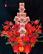 Mâm 60 Bánh Pía Hộp Vip Vàng + KẾT BÔNG 1 TỤ