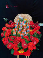 Mâm 1 Cặp Rượu vang Đà Lạt + 1 Trà OLong 500gram/ Cặp + Đèn Cầy Long Phụng số 4 + KẾT BÔNG 1 TỤ