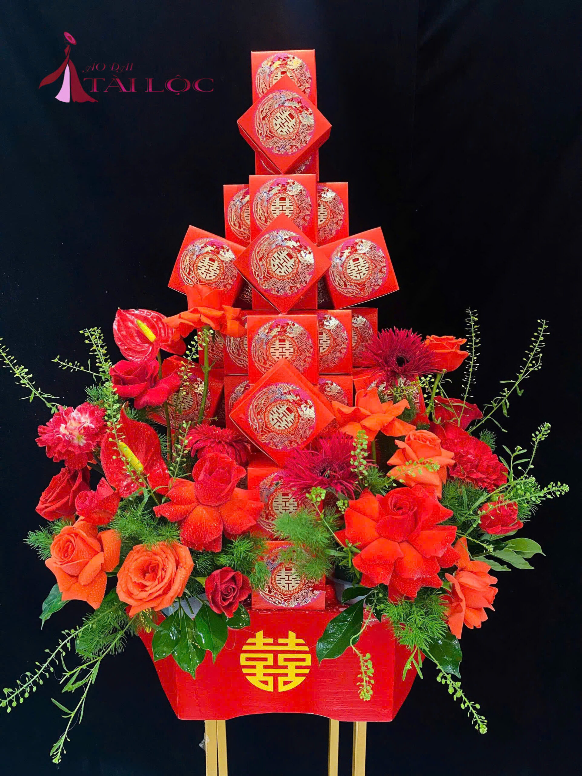 2.Trước ngày làm lễ bên Tài Lộc sẽ giao quả đến tận nhà trước nhưng mâm đồ khô như : –Trầu cau, trái cây, rồng phụng ,bánh phu thê,bánh pía, trà rượu , đèn…