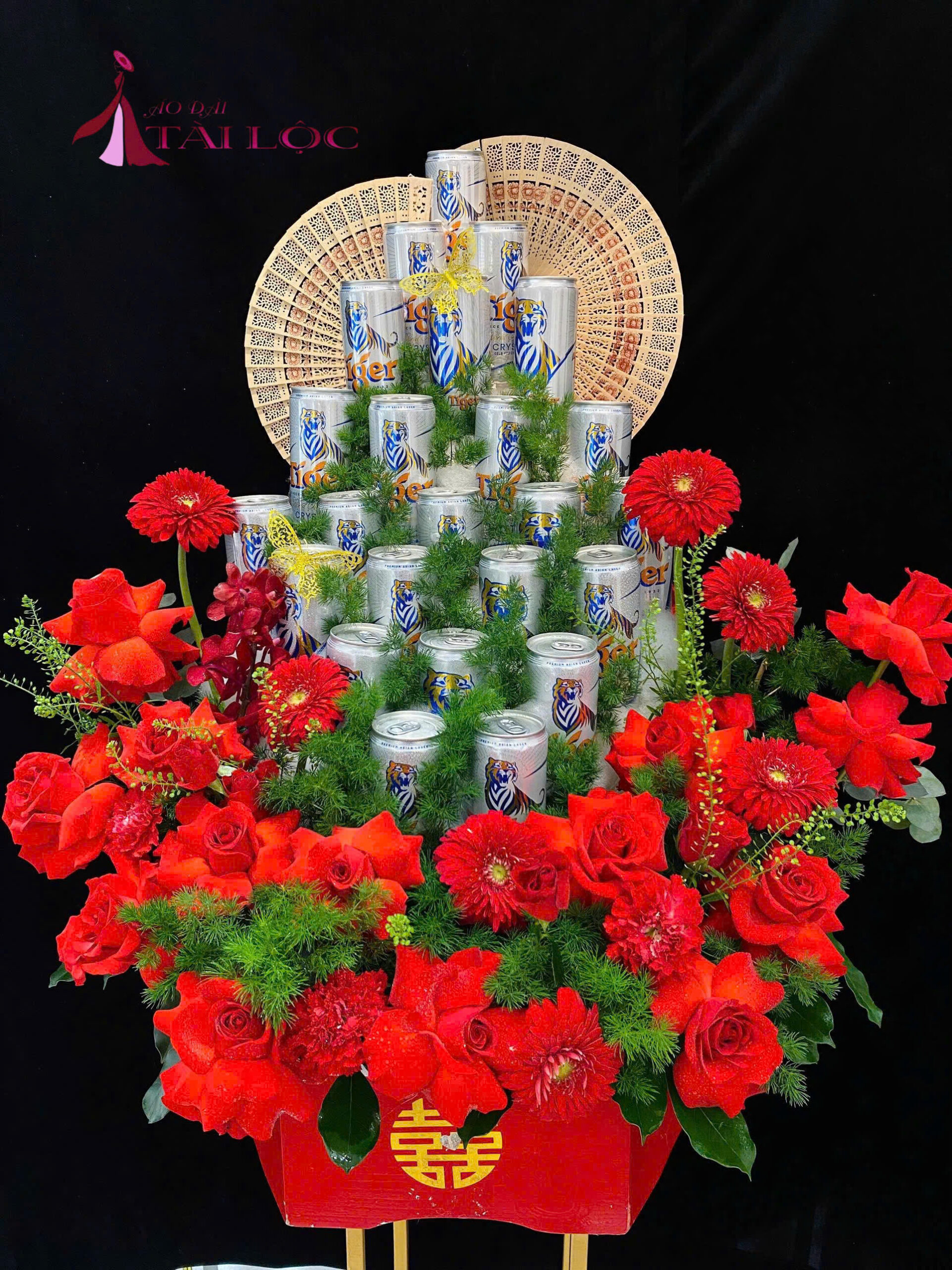 Mâm 24 lon bia bạc + KẾT BÔNG 1 TỤ