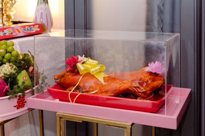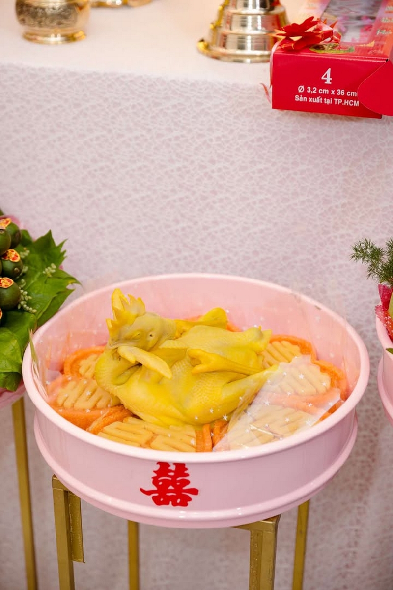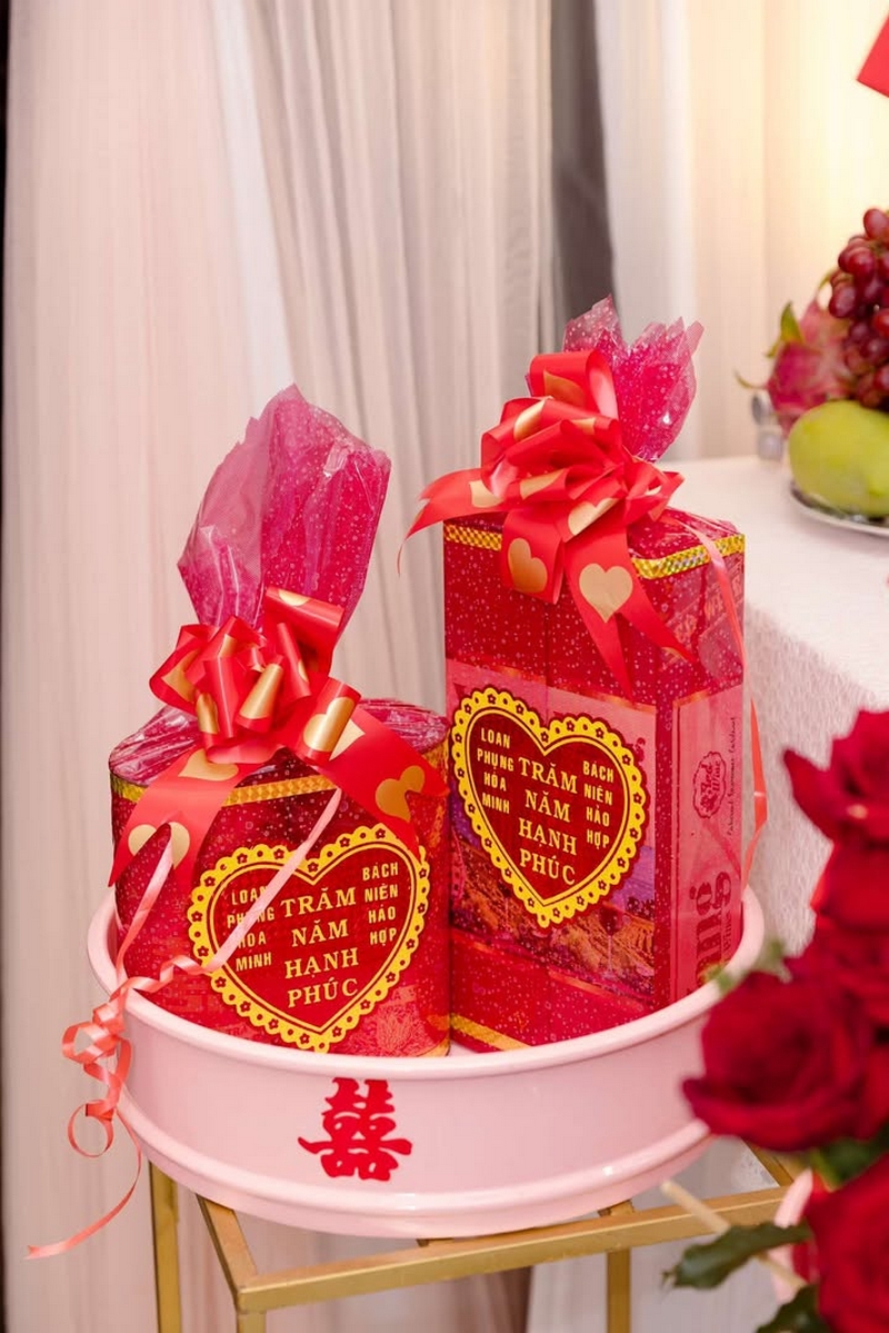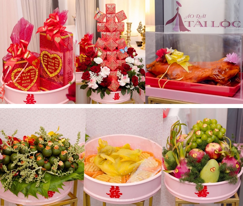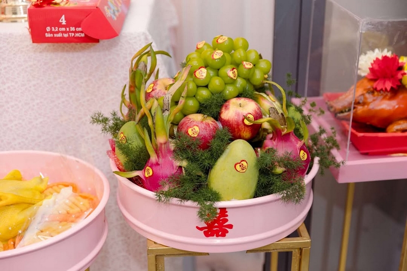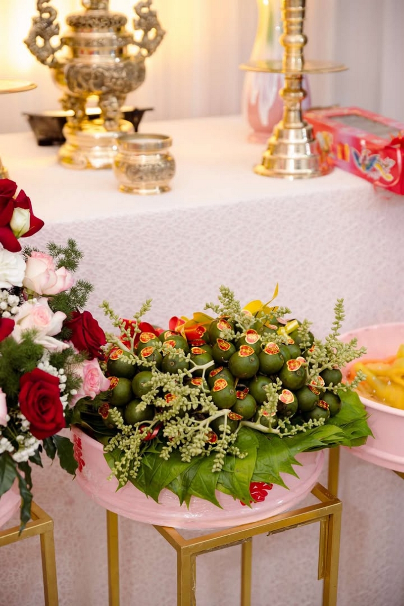2.Trước ngày làm lễ bên Tài Lộc sẽ giao quả đến tận nhà trước nhưng mâm đồ khô như : –Trầu cau, trái cây, rồng phụng ,bánh phu thê,bánh pía, trà rượu , đèn…