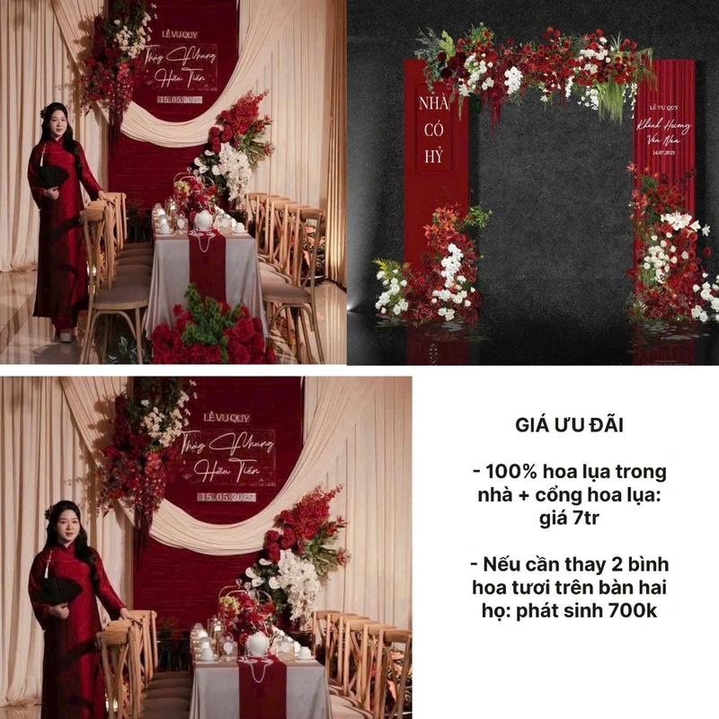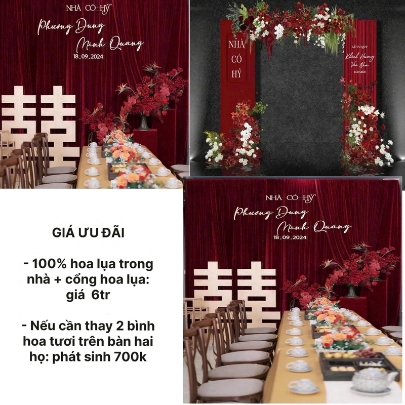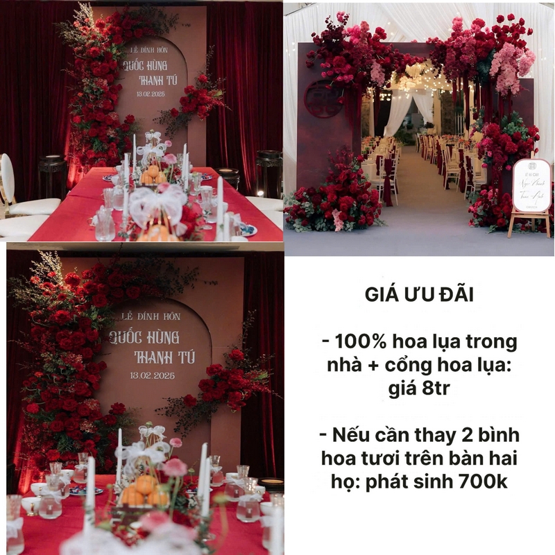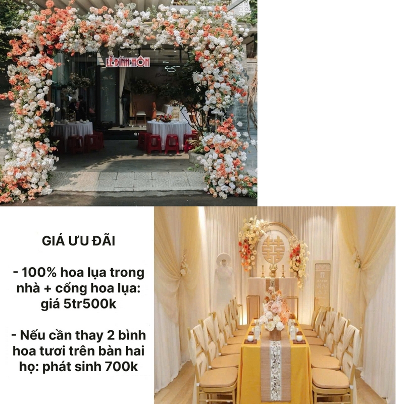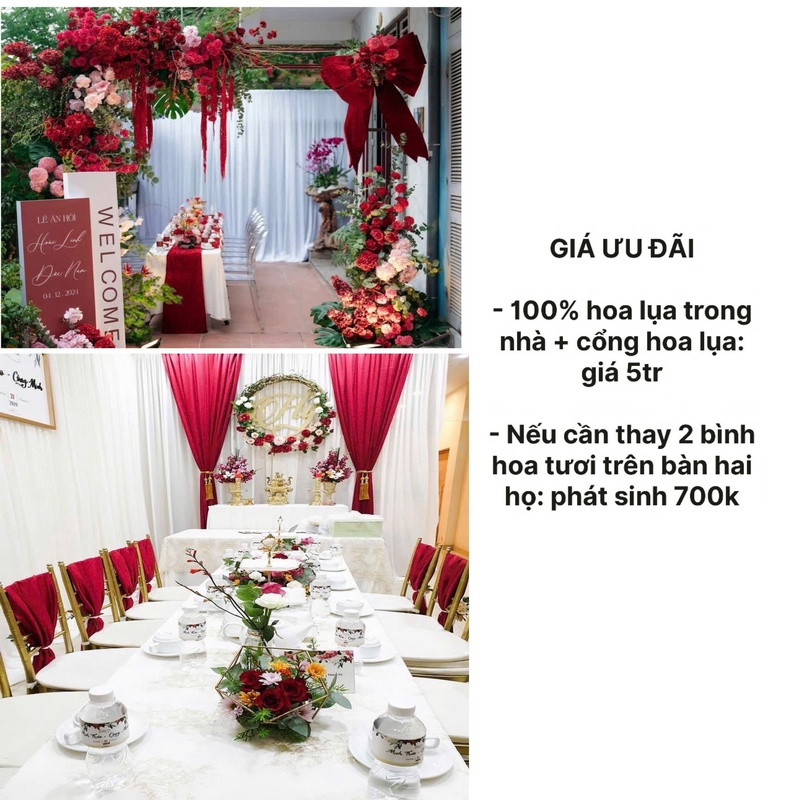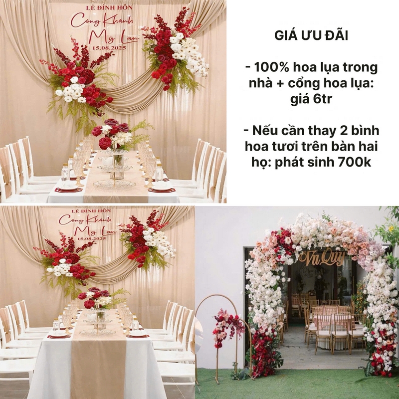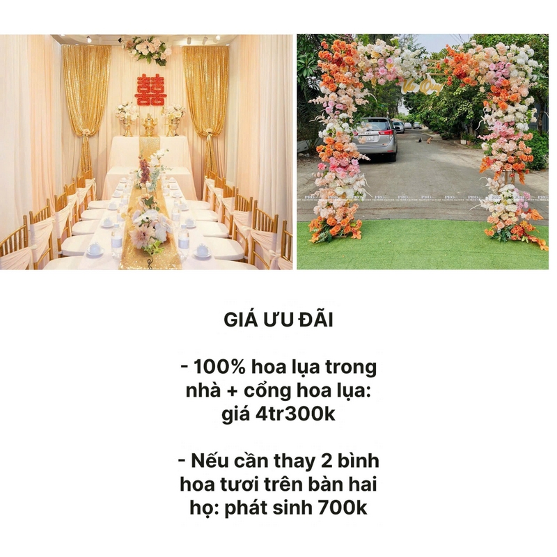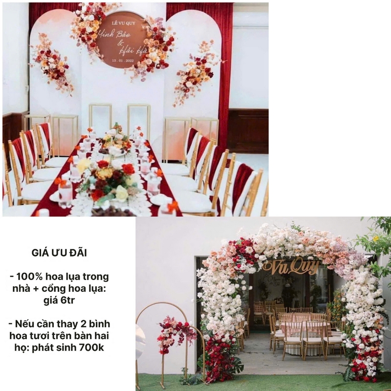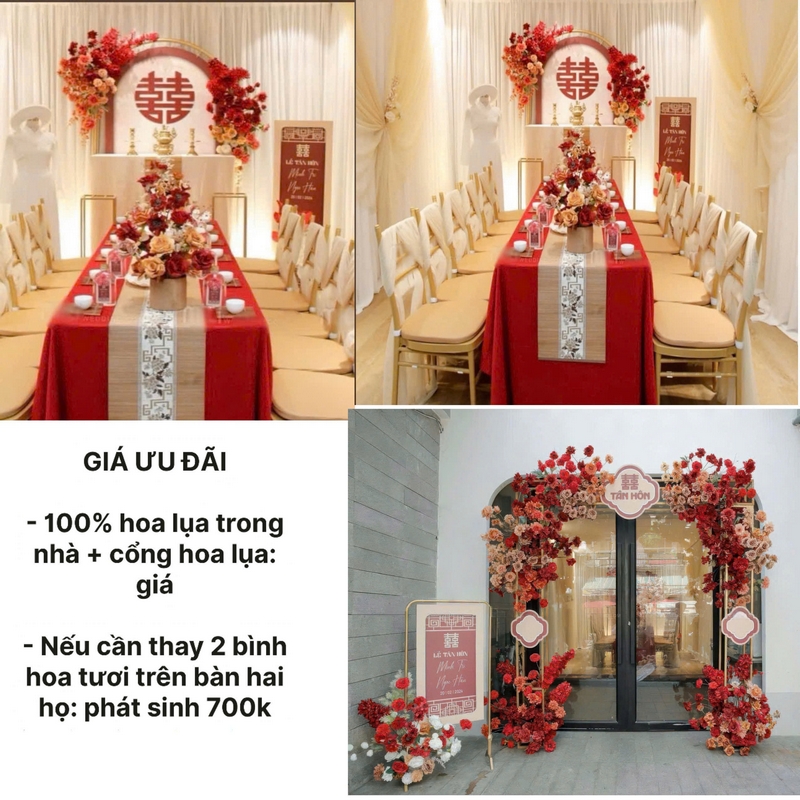 - Tặng cổng hoa cưới vải cao cấp nhấn vào link này CỔNG HOA CƯỚI ( KHÔNG TÍNH TIỀN )